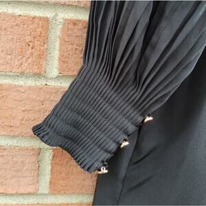 Pleated statement sleeves bring a dash of modern romance to a fluid silk dress with ultra-long ties streaming down the front.
