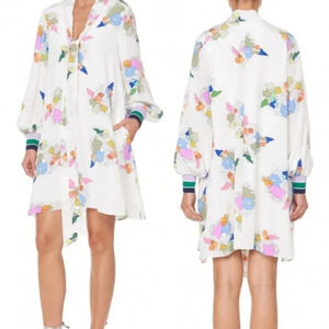 Tibi Arielle Tie Neck 100% Silk Dress Sz XS Puff Sleeve