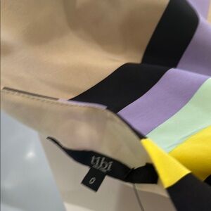 Elevate your wardrobe with the Tibi mini dress, featuring a striking multi colored graphic design. This mini dress showcases a modern geometric pattern, perfect for adding a touch of contemporary style to any outfit. The lightweight fabric and short style make it an ideal choice for effortless chic.