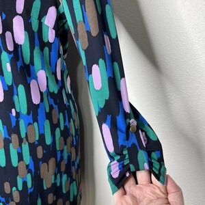 Tibi Black Abstract Colorful Strokes 3/4 Sleeve Stretchy Sheath Mini Dress XS