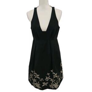 Tibi Black & Bronze Floral Print Cocktail/Party Dress V-Neckline US8