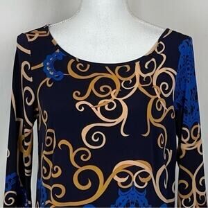 Tibi Black Gold Blue Bold Print Date Night Event Shift Dress NWOT Size S