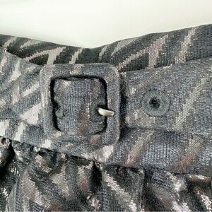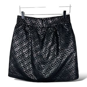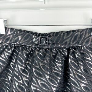 Tibi Black Metallic Jacquard Full Mini Skirt Sz 8 Back Zip Evening Party