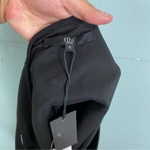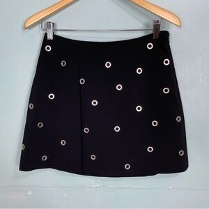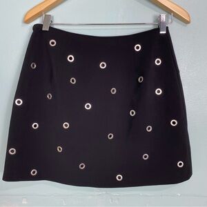 Chic black mini skirt by Tibi. Features silver eyelet details. Perfect for a stylish look.