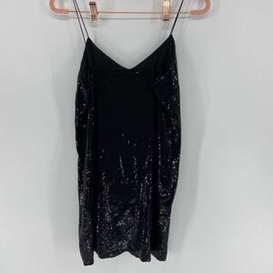 Tibi Black Party Sequined Spaghetti Strap Mini Slip Dress womens 4