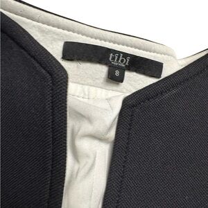 Chic and timeless, this black Tibi sheath mini dress features a flattering tailored fit with a front notch neckline and sleek structure — perfect for work, events, or a night out.