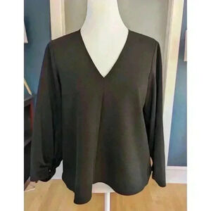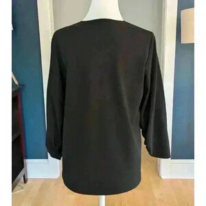 Tibi Black Shirred Sleeves A-Line V-Neck Top Size 2