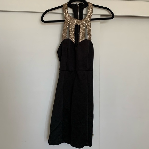 Tibi Black/Gold Metallic Sequin Front Dress, Size Medium. Preowned great condition! 94% polyester 6% elastane. 15 in pit to pit, 33 in top to bottom. Ships in 1-2 days 🍓