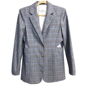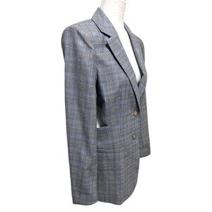 Tibi Blazer Cooper Oversized Cutout Prince Wales Checked Wool Silk Gray Size 6