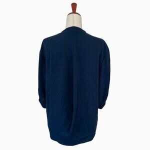 Tibi Blouse Size Small 3/4 Sleeve Crewneck Gathered Sleeve Dark Gray Teal Crepe