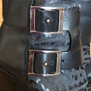 Beautiful black Tibi booties like new. Really cool with silver side buckle closure and front zip, 3 1/4 inch heel. They fit more like a 6