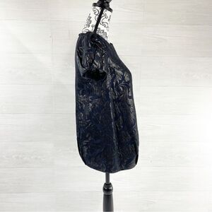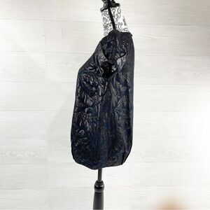 -black and blue metallic floral cotton/acetate/metallic blend material.