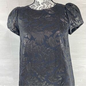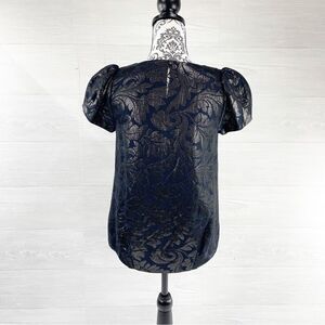 Tibi Brocade Metallic Floral Print Puff Capped Sleeve Top