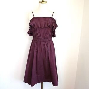 Tibi Burgundy Poplin Off Shoulder Dress Size 2