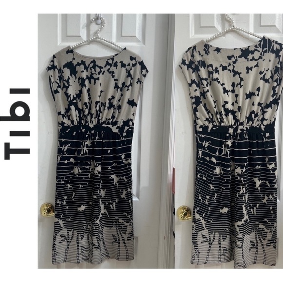 Tibi mid length sheath dress with side zip. Cap sleeves size 2, good condition, shows some wear Happy to answer questions!