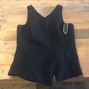 Brand: Tibi Size: 6 Sleeveless v neck too with asymmetric peplum. Front pocket with invisible zip, hidden zip closure at back. Material: 50% Cotton, 43% Polyester, 7% Elastane New with tags!