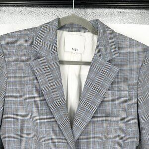Tibi Cooper Menswear Check Cutout Blazer Jacket Wool/Silk Blend, Plaid