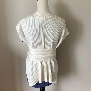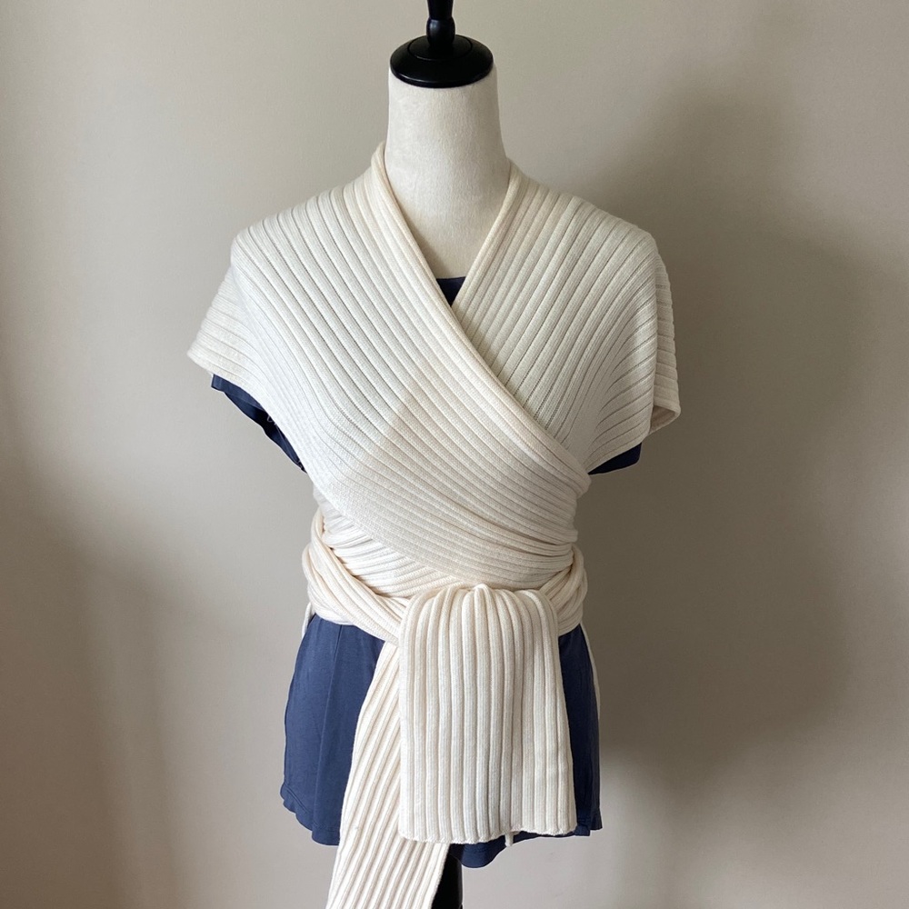 Chic cream ribbed wrap by Tibi. Stylish and versatile for any wardrobe. 100% merino wool.