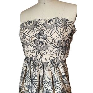 Tibi Cream and Black Strapless Floral Embroidered Midi Dress SZ 2
