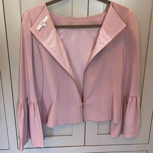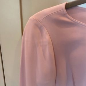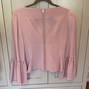 Beautiful soft pink blouse with statement bell sleeves. Boatneck style with a fitted silhouette. Full zip closure.