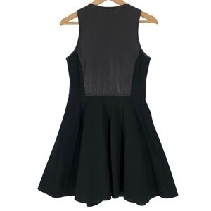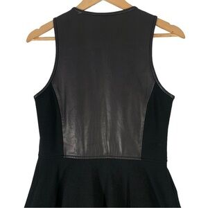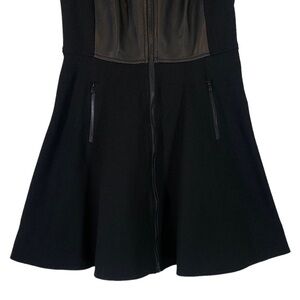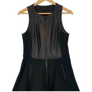Pre-owned Tibi Leather Fit & Flare Sleeveless Mini Dress Black Size 8. Features: Lamb leather upper with front zip to keep minimal or fully expose cleavage for a customizable feminine touch. Fit and flare structure with a polyester/rayon skirt with front zip pockets. Sleeveless. Pull over/Zip front closure.