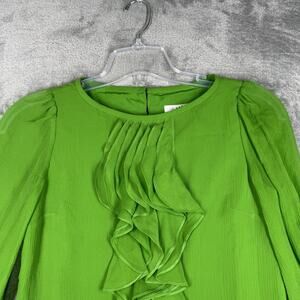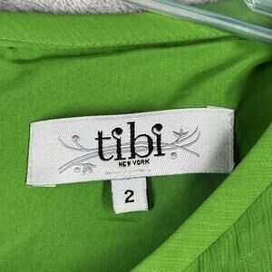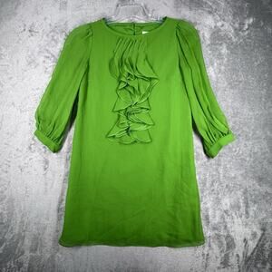 Tibi Dress Womens 2 Green Silk Shift Ruffle Preppy Minimalist Classic Elegant