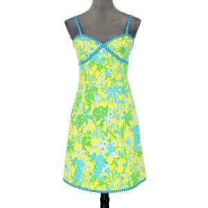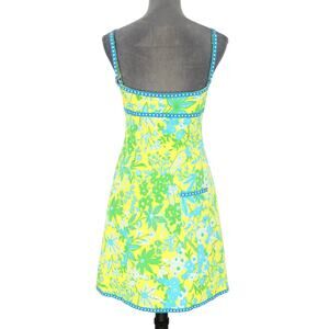 Tibi Dress Womens 2 Yellow Floral Sweetheart Stretch Cotton Strap Side Zip Lined
