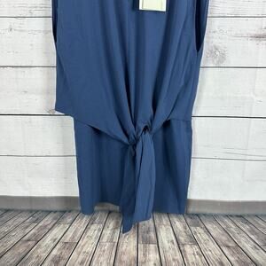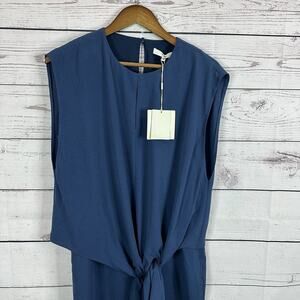 Tibi Dress Womens 8 Blue Navy Dot Tie Waist Square Neck Costal Beach