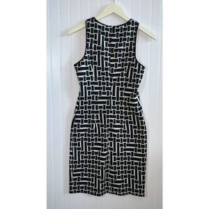 Tibi Dress Geometric Print Sleeveless Bodycon Fitted Dress Size 4 Crew Neckline