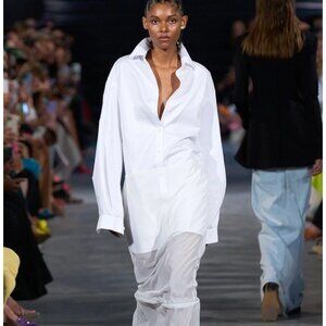 Tibi Eco Poplin Twisted Sleeve White Shirt Dress XS