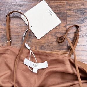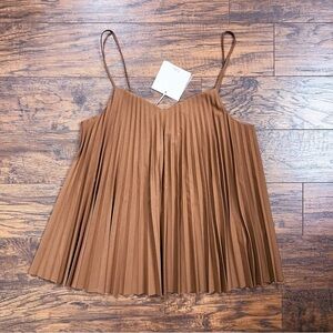 Gorgeous camisole top by designer TIBI. “Edith Pleating Cami” style in warm brown ft accordion pleated front, adjustable spaghetti straps, and smooth back. Bust 34-35“, length 26“ (adjustable w straps). Size 8, brand new with tags.