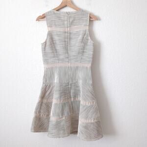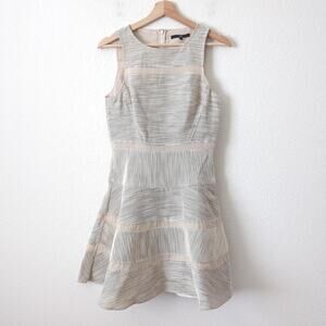 Tibi Fit Flare Dress Womens 6 Textured Gray White Sleeveless Layered High Neck