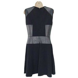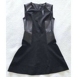 Tibi woman's little black dress. Dress is sleevelss and done in a fit and flare style with faux leather side panels. It's made of a polyester spandex blend so it has some stretch. Dress is a woman's size 6 and is brand new with tags.