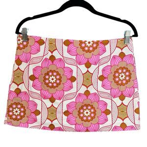 Tibi Floral Mini Skirt Pink White Crocheted Lace Panel Vibrant Preppy Y2K 90s