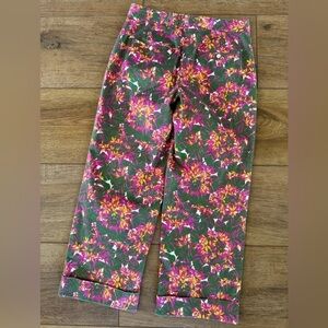 Tibi Floral Print Flat Front Cuffed Ankle Pant / Cotton/Spandex / 2