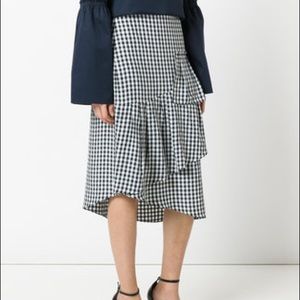 Tibi Gingham Asymmetrical Ruffle Skirt