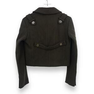 Tibi Green Admiral Cropped Peacoat 2 Collared Double Breasted Pocket Epaulets