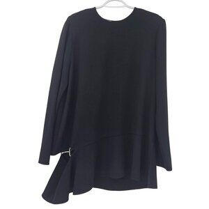 Tibi Hampden Asymmetrical Blouse Top Black Flounce Hem Round Neck Long Sleeve Lightweight Women’s