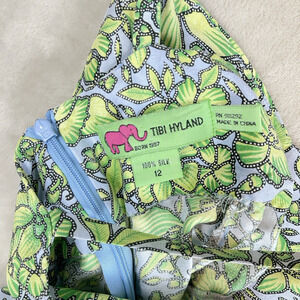 Tibi Hyland Womens Dress Size 12 Green Sheath Knee Length Sleeveless Silk Tropic
