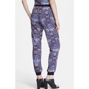 Tibi Ibis Print Jogger Pants Easy Track Pant Purple Feather Joggers Size XS