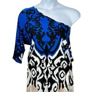 Tibi Jasmine Jersey One Shoulder Dress in Black and Ivory Multi size Small