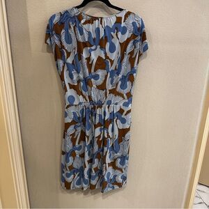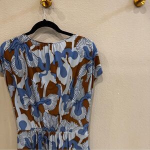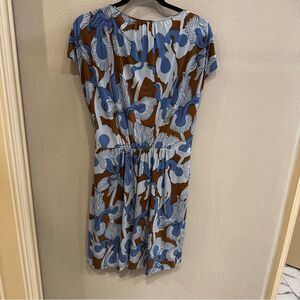 Tibi | L | Blue and Brown Wrap Sundress with Dolman Cap Sleeves size large