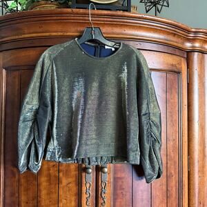 Tibi Lurex Shirred Metallic Sparkly Cropped Top Holidays Party - Gold Small