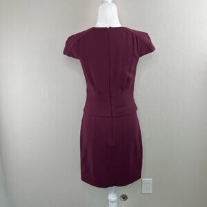 Tibi Maroon Knit Virgin Wool Short Sleeve V-Neck Peplum Mini Sheath Dress 6/SM