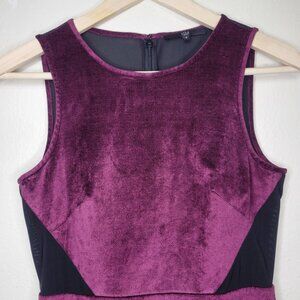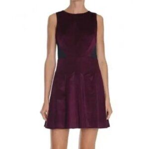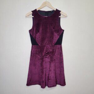 Tibi Maroon Velvet Black Mesh Skater Dress, Size 4