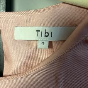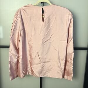 Tibi Mendini Twill Shirred Blouse Pink Satin Top Long Sleeve Round Neck Size 4
