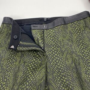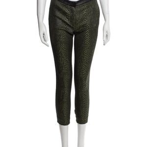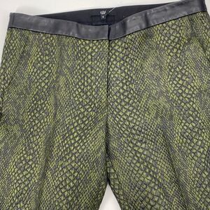 Tibi Mid-Rise Skinny Snakeskin Ankle Pants Leather Trim Stretch Green /Black 6