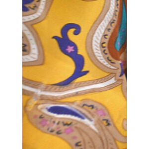 Beautiful colorful cottage core yellow floral dress from Tibi is sure to make you stand out at any occasion. V-neckline and a pullover closure, with 3/4 wide sleeves and a pleated skirt giving it a flattering fit. Made from lightweight chiffon, this dress is perfect for summer, fall, and spring. Adorned with button accents, pleated skirt and a floral pattern makes it great fit for weddings, parties, and casual events. It has been repaired on right sleeve and reinforced with garment tape (Pic 13,14) and is in excellent condition. The dress is a size 4 and is made from 100% silk, with dry clean only as the recommended garment care. Perfect for those who love the flower, cottage core and colorful aesthetic. Measures 34" long, 42" chest, 42" waist, 18" Long Sleeve x 9" Wide Ruffle. Mended small tear on right sleeve (pic 13 & 14) reinforced with garment tape.