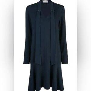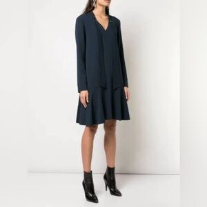 Tibi Navy Savannah Tie Neck Dress Size 4 missing metal clips