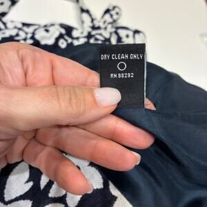Elegant navy dress with white floral pattern. Perfect for any occasion.